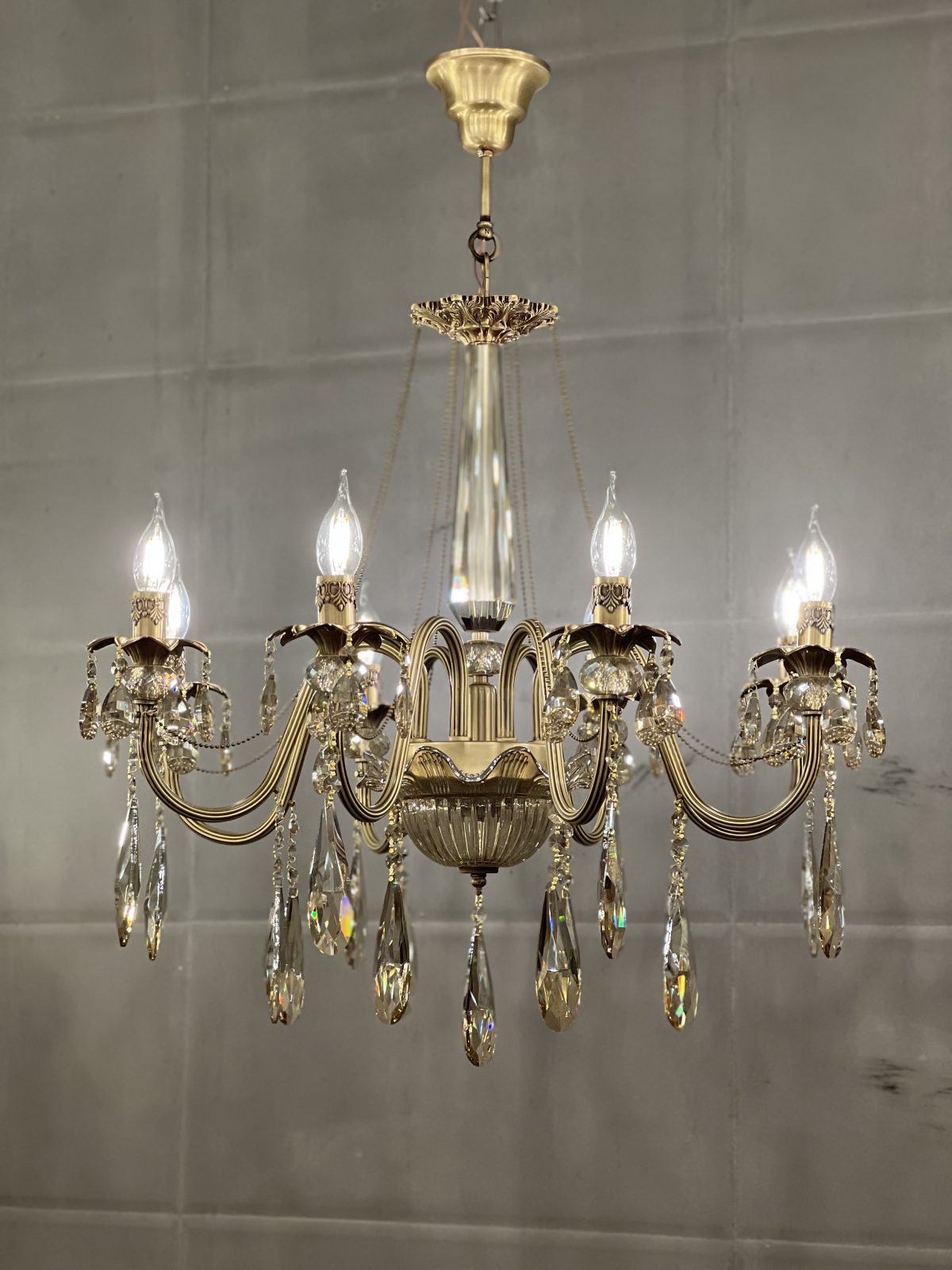 لوستر ترنم ۸شاخه برنج و کریستال با زنبق آلومینیوم نیکان دکور