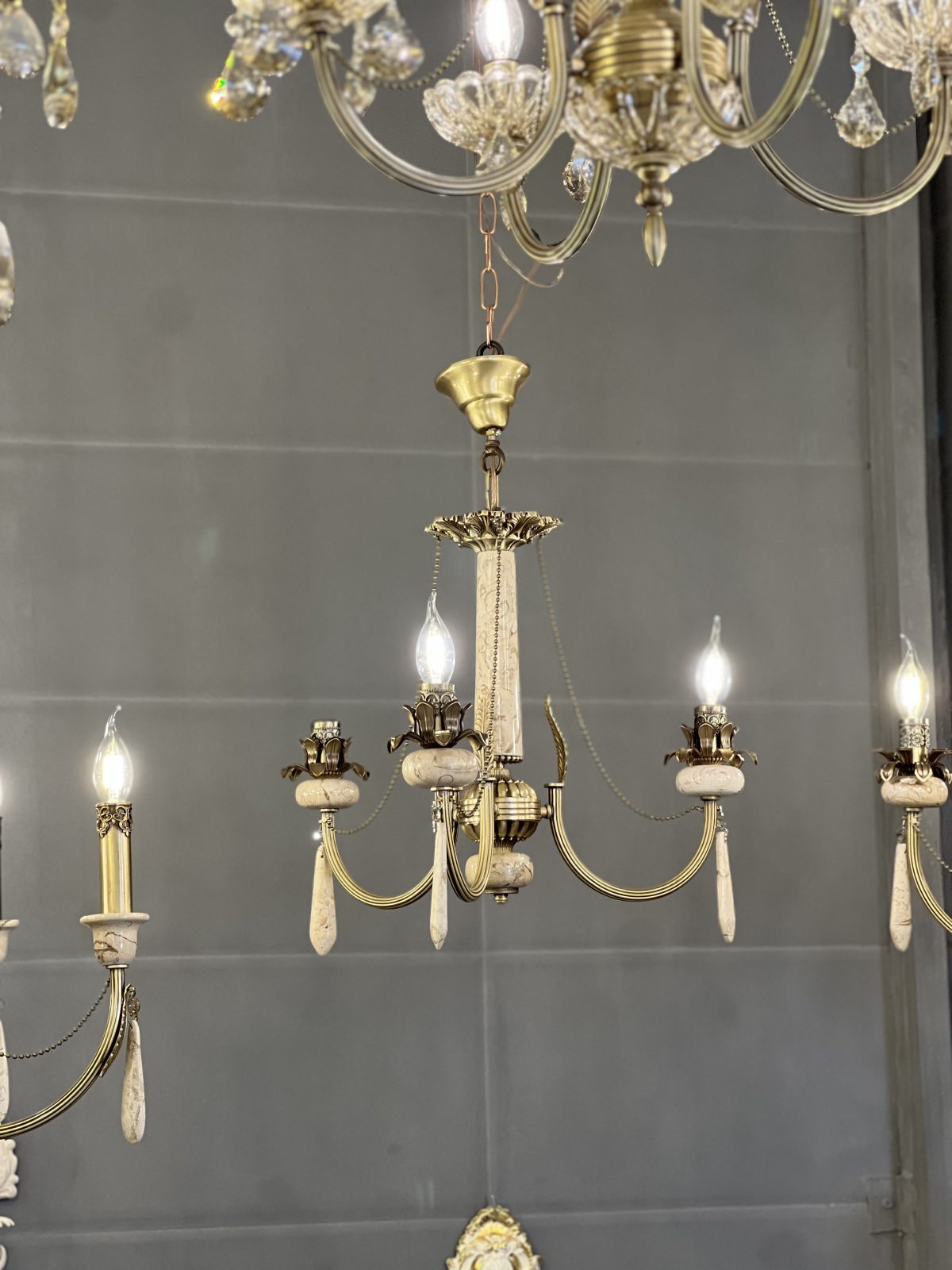 لوستر ۳شاخه لیانا بدنه برنج سنگ طبیعی کرم نیکان دکور